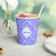 Paper party cups with the blue and white Greek Flag and the word, HELLAS, below in blue to match the stripes on the flag. Design is tiled for artistic effect. A white fractal of squiggly squares has a spot for a name, in blue letters, so you can create a personalized for your get together. Make your Greek family reunion or travel group party special. Adds a nice touch to an Oxi Day celebration. Change the font and colour of the name with the "edit design" feature.