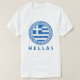 Hellas men's white T-Shirt featuring the national flag of Greece inside a Greek blue Aztec circle. This T-Shirt is ideal if you are Greek or to wear while you are enjoying your vacation in Greece. You can also give this as a gift from Greece to anyone who will like this T-Shirt.