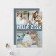 Whimsical and modern New Year's photo template card featuring a typography text that says "Hello, 2026" with 3 of your pictures. You can add another picture and a message on the back of the card. Slate blue color.