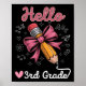 Hello 3rd Grade Back To School Coquette Pencil Bow Poster