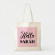 These bags were super cute (I purchased 3). The material is more of a canvas look & feel. The colour of the bag is slightly off white, but the letters look exactly as pictured. I took 3 photos in different lighting. Would recommend! I liked how there was an option to choose the font and colour of the name. The words are legible and the colours are exactly as pictured.