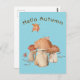 Hello Autumn Dry Leaf Mushroom Watercolor Postcard