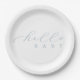 Hello Baby Blue Script Minimalist Baby Shower Paper Plate