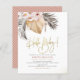 A rustic and elegant baby shower design with modern gold script lettering and a watercolor floral bouquet. The greenery appears in the top left-hand corner and includes dried palm leaf, pampas grass, palm fronds, orchids, and pink flowers. "Hello Baby!" appears below in chic calligraphy with your event details below in simple typography. In the bottom right-hand corner there is faux gold glitter to give balance to the design and add a little extra sparkle! Cards reverse to a bohemian dusty pink colour with a white tile pattern. Editable online, simply change the wording in the template boxes provided. Design your own printed and personalized invitations! This desert greenery theme is perfect for spring, summer, and fall showers. As part of the budget selection on Zazzle, this sheet isn't a standard invite size or paper quality. If you want this design on an invitation card you can find it in our store or use the Zazzle Make Machine to transfer it onto the product of your choice. Feel free to message me for matching baby shower games, recipe cards, thank you cards, signs, inserts, or any other custom ideas you have - I'll be happy to help!