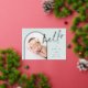 An elegant photo birth announcement design with a unique layout, this chic card features a vertical photo in an arched shape on a soft sage green background, with "hello" in rose gold foil hand lettered script typography. Personalize with your new baby's name, birthdate, and birth stats, and add a personal message to the back, along with three additional square photos.
