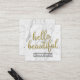 Hello Beautiful 3D Gold Script White Marble Beauty Salon Referral Business Cards.