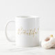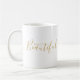 This chic coffee mug features Hello Beautiful gold script on white background.