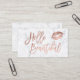 A modern, stylish custom name beauty business card with modern hand lettering style elegant brush typography saying Hello beautiful in faux rose gold foil on a trendy and elegant white marble background with a rose gold lips . If you need any customization, don't hesitate in contacting me