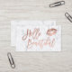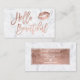 A modern, stylish custom name beauty business card with modern hand lettering style elegant brush typography saying Hello beautiful in faux rose gold foil on a trendy and elegant white marble background with a rose gold lips . If you need any customization, don't hesitate in contacting me. Add your social media