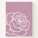 The product design features a simple large rose illustration in retro pink and white. This elegant botanic design makes a modern chic and unique notebook with personalized text.