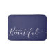 Hello Beautiful Navy Blue White Typography Modern Bath Mat