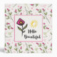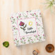 A binder with a square frame and a pink border, inside it says "Hello Beautiful" written in a trendy font with a yellow sun above the text. Also a pretty pink, long stem flower with green leaves off to the side. The backdrop is a seamless pattern with hand drawn pink wildflowers with long green stems and leaves on a eggshell white coloured background. Pink circles and sprigs also decorate the design. Cute and pretty floral design.