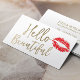 Hello Beautiful Makeup Artist Gold Typography Red Lips Print Business Cards.