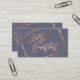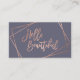 A modern, stylish custom name beauty business card with modern hand lettering style elegant brush typography saying Hello beautiful in faux rose gold foil on a geometric faux rose gold doubles stripes frame on a modern purple grey background. If you need any customization, don't hesitate in contacting me