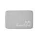 Grey bathmat with white text "hello beautiful". Great housewarming party home bathroom décor for women.