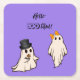 Gentleman Ghost Presenting Flowers to Lady Ghost With Purple Background