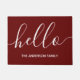 Hello Calligraphy Script Modern Burgundy Personalized Doormat
