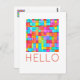 HELLO Colourful Abstract Art Modern Fun Cheerful Postcard