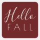 Hello Fall Deep Red Minimalist Autumn Square Sticker