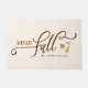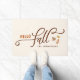 "Fall" in love with this modern and elegant autumn-themed doormat with pretty typography and simple colourful leaves. Personalize the template with your family name or custom text. Shown in a neutral colour palette of orange, brown, yellow, and tan on a cream background, but all colours are editable. © Kimbellished, LLC