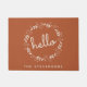 Welcome your visitors with this stylish terracotta doormat featuring a simple floral wreath around the world Hello. Personalize it with your name.