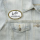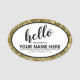 Add your name and event or business occupation on this designer name tag for any professional. An optional 'hello' text and gold glitter border has been supplied to highlight your custom tag.