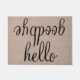 Hello goodbye funny quote saying hipster humour faux linen burlap jute background doormat.