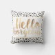 Hello Gorgeous gold script pillow with hand painted dot back ground. Trendy and modern pillow.