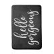 Hello gorgeous in modern white script on a black background. The background colour can easily be changed using the customization feature.