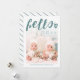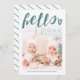 Adorable Happy New Year card with "hello" and a little heart written in a green hand lettered script over your own photo. The back features a matching white and green striped pattern.