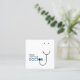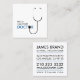 A double sided square business cards design for medical staff, such as doctors and general practitioners. The front of the design shows an introductory line saying "Hello, I am your doctor", with a stethoscope using the chest piece to replace the second "O" in the word doctor. The back of this modern square business card shows your name, occupation and all your contact details.