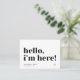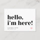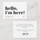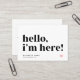 A fun and modern business branding & packing insert card to thank customers for their purchase and offer a discount code promotion for their next order. On front is a modern minimalist typography design that says "hello i'm here" in a modern serif font with a cute pink heart at bottom and your business name and website. On back is a fully customizable message thanking your customer a discount code. Perfect for makers, diy crafts, business packing insert and more. ©Marisu Valencia