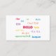 Stand out from the crowd with this great hello design! It says hello in many languages like French, Spanish and Italian! The text on the back can be changed and customized to fit your needs.