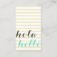 Business or business card perfect for language services. If you are an interpreter, translator, English teacher, Spanish teacher, or if you are a multilingual or multilingual professional with multiple languages, this is your card. Use it to introduce you to your customers, students, companies and colleagues in the industry. "Hello, hello" can be changed for other greetings in other languages. Simple, minimalist, modern card with yellow horizontal lines and a professional look. Personalize her. <br>()</br>Choose this business card for your language services. If you are an ter, translator, English teacher, Spanish teacher, multilingual professional with a proficiency in the use of several languages, select select card to introduce yourself, customers, students or interpreters. "Hello" may be change for other greetings in other languages. Very minimalist, modern with horizontal lines and with a very professional look. Customize it!