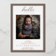 Simple, minimalist, modern and elegant baby boy "Hello Little One" in dark greige and white with real foil accents on front Birth Announcement. Back features an additional photo template and text with no foil accents. Simply add your precious baby's photos and details to complete this design. Composite design by Holiday Hearts Designs (rights reserved).