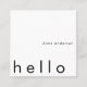 This Hello Minimalist Simple Custom Professional Square Business Card showcases a clean, simple white design with a bold and modern "Hello". Its minimalist black and white colour scheme and large typography reflect Scandinavian-inspired elegance, perfect for a professional yet informal introduction. The casual yet refined style makes it ideal for small businesses, creative professionals, or anyone looking to make a sleek first impression. Customize yours today for a personalized, unforgettable touch!