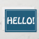 "Hello", a modern, simple, minimalist, trendy way to say I'm thinking of you, and want to keep in touch! Hello is in white on a dark ocean blue background in a single white frame. Back of card is white with an matching frame and accented with a line of matching text to add your custom name, phrase (or delete).
