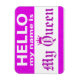Funny "hello my name is" my queen name tag magnet. Great for the little princess or queen in your life, or yourself!