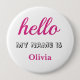 Modern Hello Cute Colourful My name is Personalized Pink Hello Button