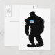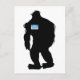 Full sized mysterious Sasquatch silhouette, wearing a traditional blue & white, “Hello My Name Is ___,” badge. With “Sasquatch,” written in the name blank in a simple black handwritten font.