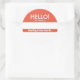Hello My Name Is name tag but with a twist. The round sticker also has a line that says "Something to Know About Me." Guests at your event can write in their names and something they would like to talk about for a great conversation starter or fun party. Edit any of the text lines or change the red colour if you like.