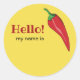Hello name tag with hot chili pepper
