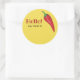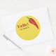 Hello name tag for a chili cook off or any food event with hot peppers. The text says Hello! my name is, but you can edit it if you like. The yellow background colour can also be changed to another colour. The graphic is of a red chili pepper. Participants, contestants, or guests can write their name and/or business name in the empty space on the matte finish sticker.