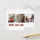 Hello New Year Simple Typography Three Photo Maroon Postcard