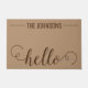 Doormat design features the word HELLO in a pretty script font. Just personalize with your famiy name for a unique welcome mat. Perfect for decorating or giving as a housewarming gift.