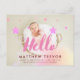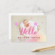 Hello Pink Script Dreamy Baby Birth Photo Announcement Postcard