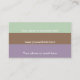 The front of this classy minimal design features a three colour palette with plum purple, chocolate brown, and mint green with the greeting hello in a simple white block font at the top right while in the lower left is a place for you to add your name and/or business. On the back the colour palette is flipped with three places for you to add your contact details. All elements of this design can be fully customized, so make it your own or leave it as is. Just add your details and you're done!