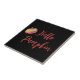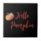 Orange black Hello Pumpkin fall ceramic tile. Country rustic autumn decor. Image copyright Marg Seregelyi Photography.
