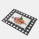 This adorable, farmhouse style doormat features a dark grey buffalo plaid background and a classic orange gingham pumpkin.. Says"Hello Pumpkin" or you can personalize with your name or a different phrase.