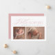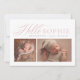 This two-photo birth announcement features an elegant script "hello" beside a name or nickname. It also includes room for the baby's name and other details along with a square and a horizontal photo. The pink colour is perfect for announcing a sweet baby girl and the backer is a coordinating pink on pink stripe. Also available in other colours.